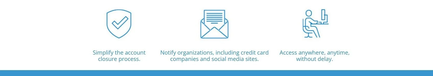 A: ProtectHeir provides deceased notification letters, web links, and phone numbers for financial institutions, credit bureaus, government agencies, social media sites, and more. We help minimize the possibility of criminals using the name of the deceased to open accounts in their name. You will be able to submit notifications much faster than an individual doing this on their own. This is crucial to help stop deceased identity theft before it begins.